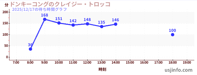 • ドンキーコングのクレイジー・トロッコ$B$N(B2025年12月17日の待ち時間