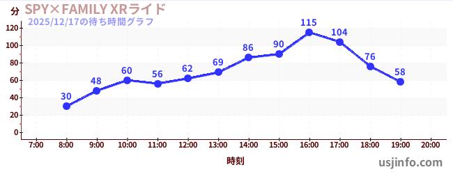 • SPY×FAMILY XRライド$B$N(B2025年12月17日の待ち時間