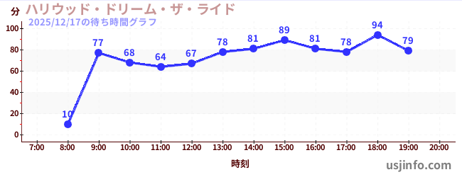 • ハリウッド・ドリーム・ザ・ライド$B$N(B2025年12月17日の待ち時間