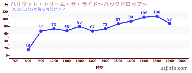 • ハリウッド・ドリーム・ザ・ライド〜バックドロップ〜$B$N(B2025年12月22日の待ち時間