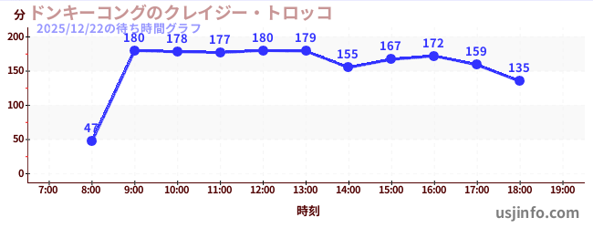 • ドンキーコングのクレイジー・トロッコ$B$N(B2025年12月22日の待ち時間