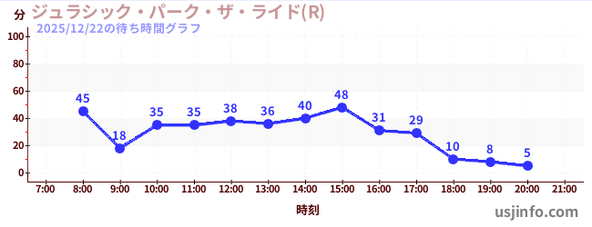 • ジュラシック・パーク・ザ・ライド(R)$B$N(B2025年12月22日の待ち時間