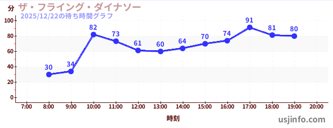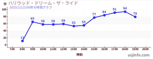 • ハリウッド・ドリーム・ザ・ライド$B$N(B2025年12月22日の待ち時間