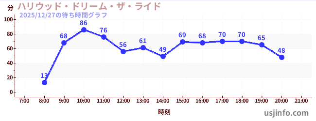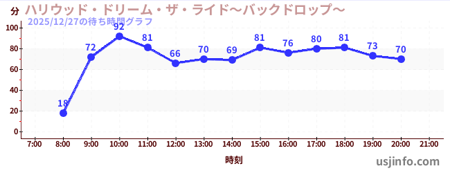 • ハリウッド・ドリーム・ザ・ライド〜バックドロップ〜$B$N(B2025年12月27日の待ち時間