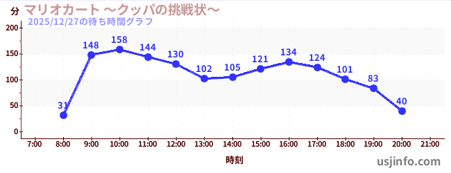 • マリオカート ~クッパの挑戦状~$B$N(B2025年12月27日の待ち時間