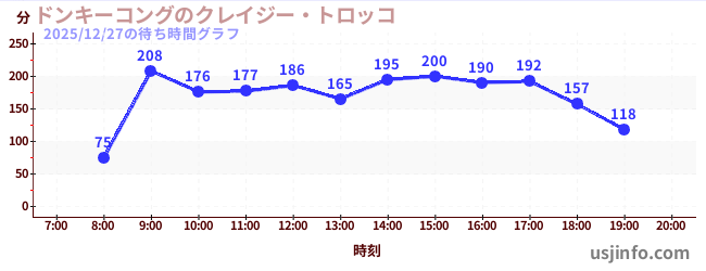 • ドンキーコングのクレイジー・トロッコ$B$N(B2025年12月27日の待ち時間