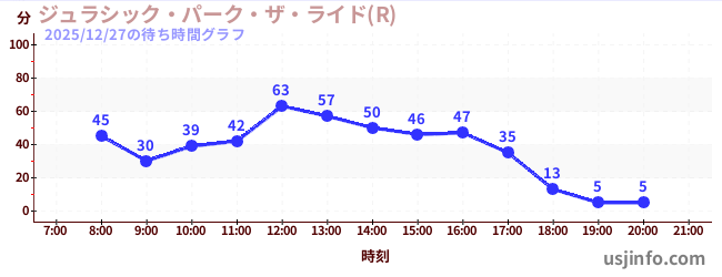 • ジュラシック・パーク・ザ・ライド(R)$B$N(B2025年12月27日の待ち時間