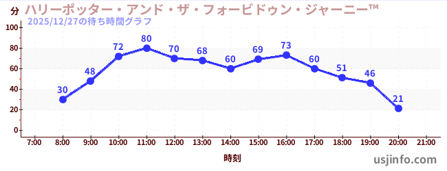 • ハリーポッター・アンド・ザ・フォービドゥン・ジャーニー™$B$N(B2025年12月27日の待ち時間