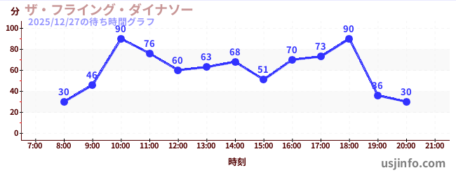 • ザ・フライング・ダイナソー$B$N(B2025年12月27日の待ち時間