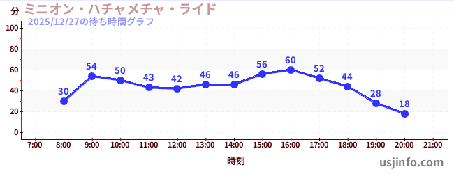 • ミニオン・ハチャメチャ・ライド$B$N(B2025年12月27日の待ち時間