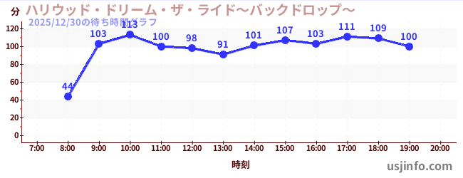 • ハリウッド・ドリーム・ザ・ライド〜バックドロップ〜$B$N(B2025年12月30日の待ち時間
