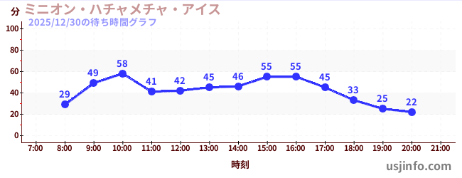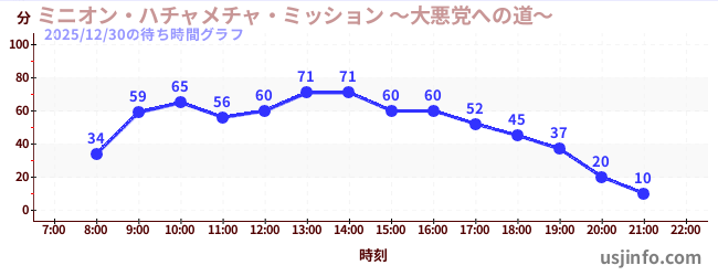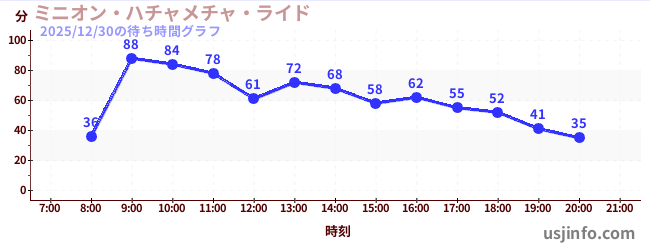 • ミニオン・ハチャメチャ・ライド$B$N(B2025年12月30日の待ち時間