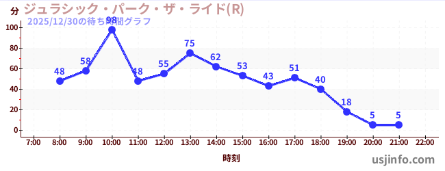 • ジュラシック・パーク・ザ・ライド(R)$B$N(B2025年12月30日の待ち時間