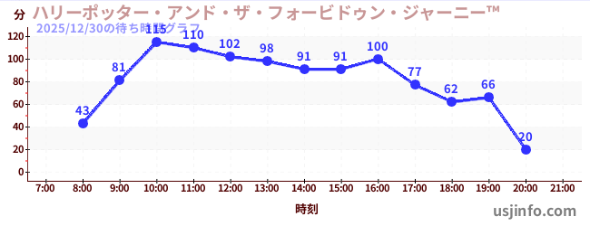 • ハリーポッター・アンド・ザ・フォービドゥン・ジャーニー™$B$N(B2025年12月30日の待ち時間
