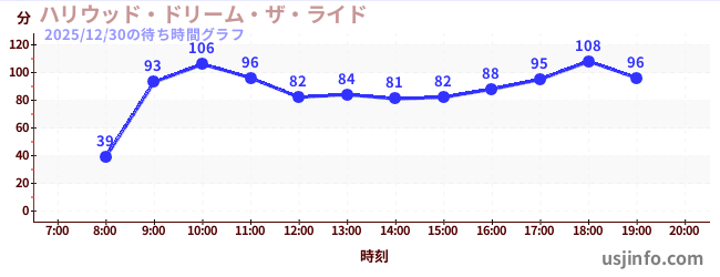 • ハリウッド・ドリーム・ザ・ライド$B$N(B2025年12月30日の待ち時間