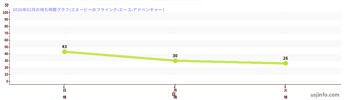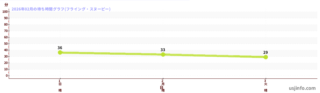 • フライング・スヌーピー$B$N(B2026年02月01日のの一日平均待ち時間