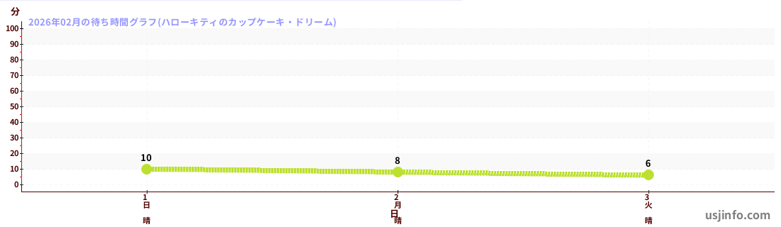 • ハローキティのカップケーキ・ドリーム$B$N(B2026年02月01日のの一日平均待ち時間