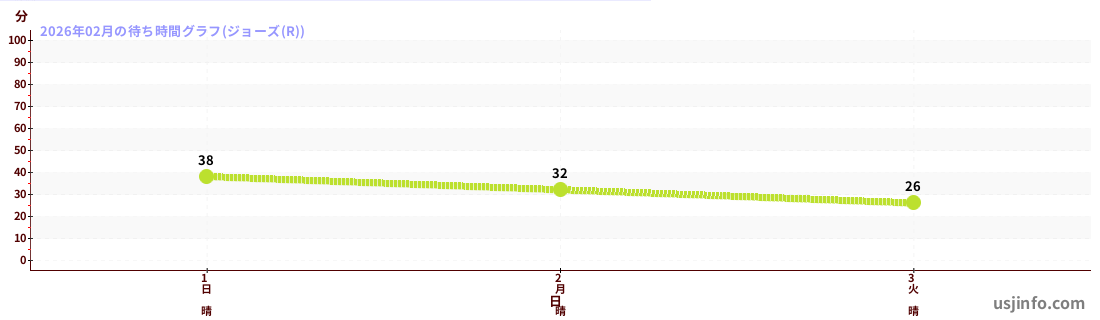 • ジョーズ(R)$B$N(B2026年02月01日のの一日平均待ち時間
