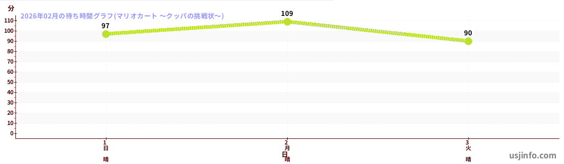 • マリオカート ~クッパの挑戦状~$B$N(B2026年02月01日のの一日平均待ち時間