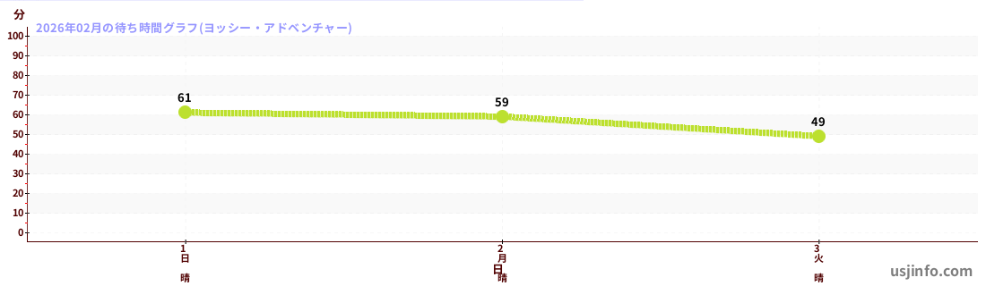 • ヨッシー・アドベンチャー$B$N(B2026年02月01日のの一日平均待ち時間