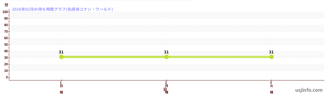 • 名探偵コナン・ワールド$B$N(B2026年02月01日のの一日平均待ち時間