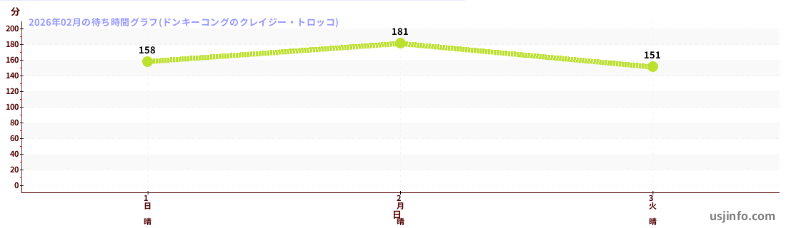 • ドンキーコングのクレイジー・トロッコ$B$N(B2026年02月01日のの一日平均待ち時間
