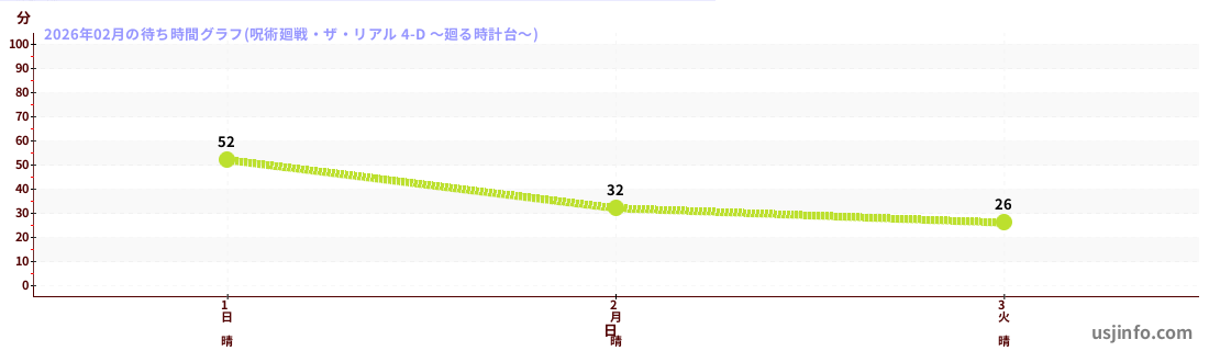 • 呪術廻戦・ザ・リアル 4-D ~廻る時計台~$B$N(B2026年02月01日のの一日平均待ち時間
