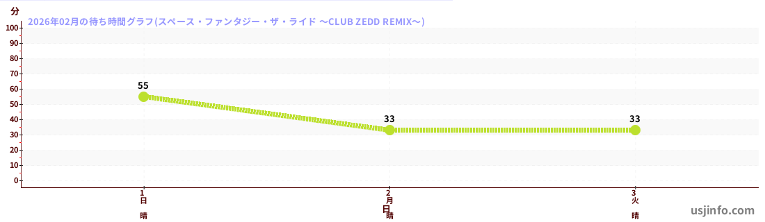 • スペース・ファンタジー・ザ・ライド ~CLUB ZEDD REMIX~$B$N(B2026年02月01日のの一日平均待ち時間