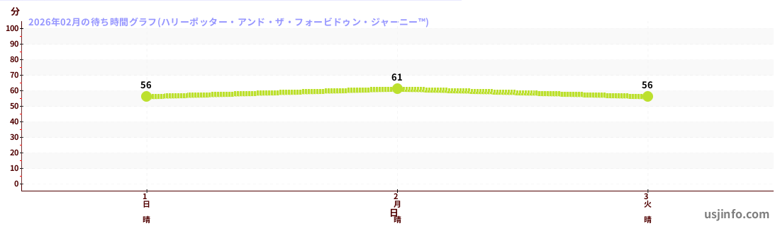 • ハリーポッター・アンド・ザ・フォービドゥン・ジャーニー™$B$N(B2026年02月01日のの一日平均待ち時間