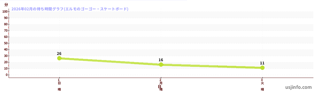 • エルモのゴーゴー・スケートボード$B$N(B2026年02月01日のの一日平均待ち時間