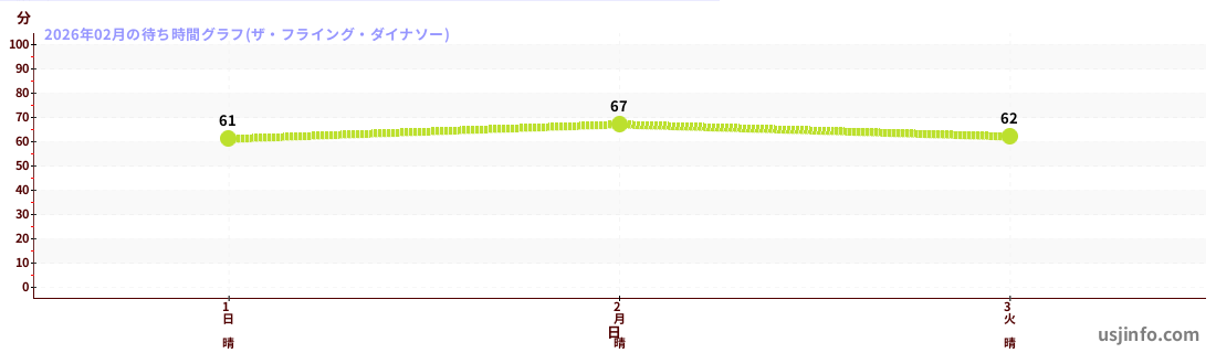 • ザ・フライング・ダイナソー$B$N(B2026年02月01日のの一日平均待ち時間