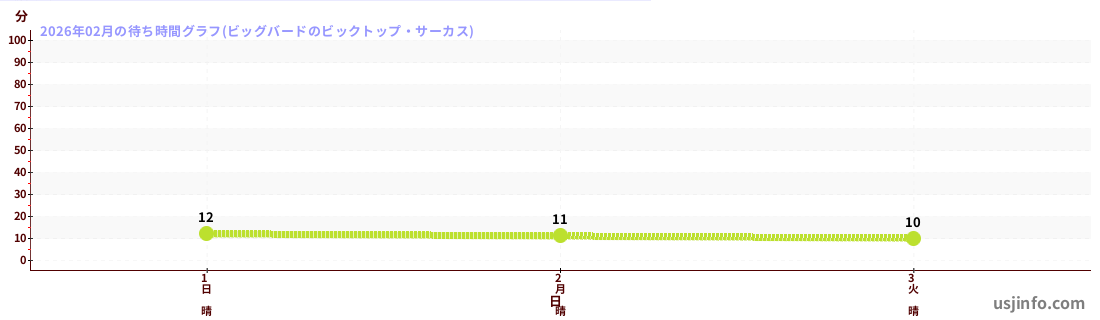 • ビッグバードのビックトップ・サーカス$B$N(B2026年02月01日のの一日平均待ち時間