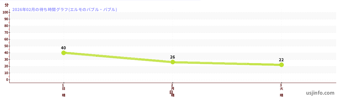 • エルモのバブル・バブル$B$N(B2026年02月01日のの一日平均待ち時間