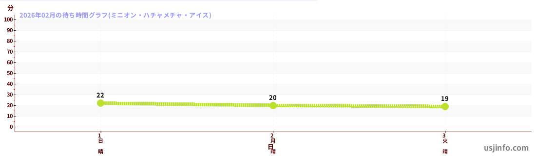 • ミニオン・ハチャメチャ・アイス$B$N(B2026年02月01日のの一日平均待ち時間