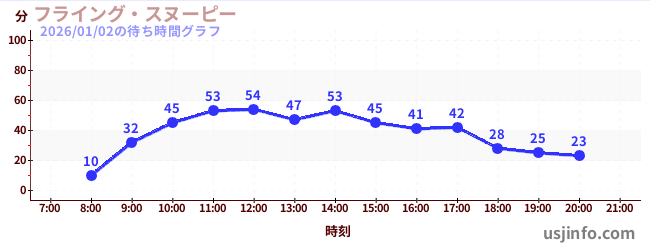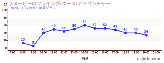 • スヌーピーのフライング•エース•アドベンチャー$B$N(B2026年01月02日の待ち時間
