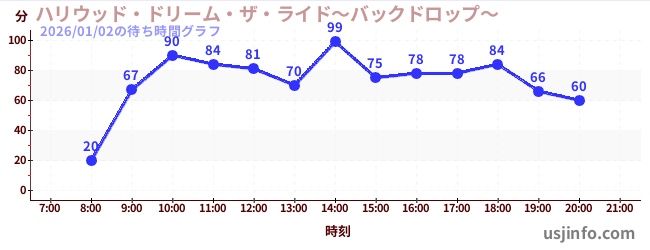 • ハリウッド・ドリーム・ザ・ライド〜バックドロップ〜$B$N(B2026年01月02日の待ち時間