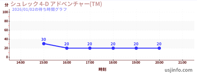 • シュレック 4-D アドベンチャー(TM)$B$N(B2026年01月02日の待ち時間