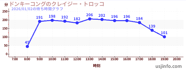 • ドンキーコングのクレイジー・トロッコ$B$N(B2026年01月02日の待ち時間