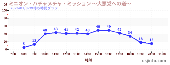• ミニオン・ハチャメチャ・ミッション ~大悪党への道~$B$N(B2026年01月02日の待ち時間