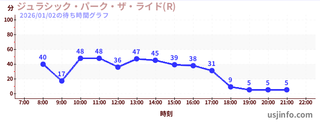 • ジュラシック・パーク・ザ・ライド(R)$B$N(B2026年01月02日の待ち時間