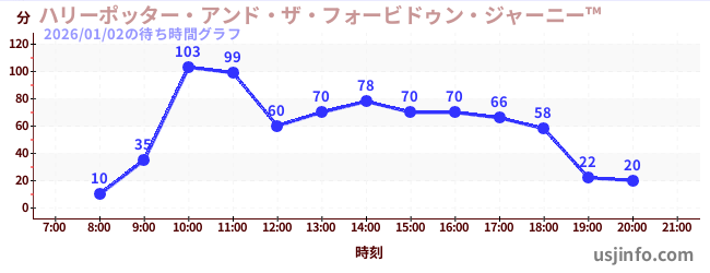 • ハリーポッター・アンド・ザ・フォービドゥン・ジャーニー™$B$N(B2026年01月02日の待ち時間