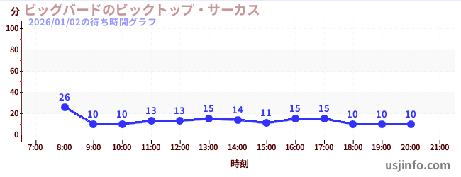 • ビッグバードのビックトップ・サーカス$B$N(B2026年01月02日の待ち時間