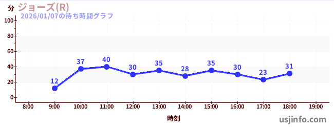 • ジョーズ(R)$B$N(B2026年01月07日の待ち時間