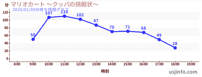 • マリオカート ~クッパの挑戦状~$B$N(B2026年01月09日の待ち時間