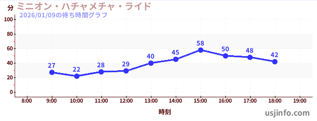 • ミニオン・ハチャメチャ・ライド$B$N(B2026年01月09日の待ち時間