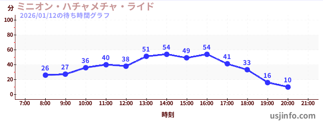 • ミニオン・ハチャメチャ・ライド$B$N(B2026年01月12日の待ち時間