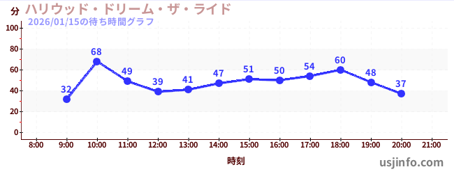 • ハリウッド・ドリーム・ザ・ライド$B$N(B2026年01月15日の待ち時間
