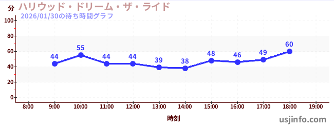 • ハリウッド・ドリーム・ザ・ライド$B$N(B2026年01月30日の待ち時間