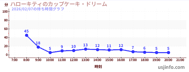 • ハローキティのカップケーキ・ドリーム$B$N(B2026年02月07日の待ち時間