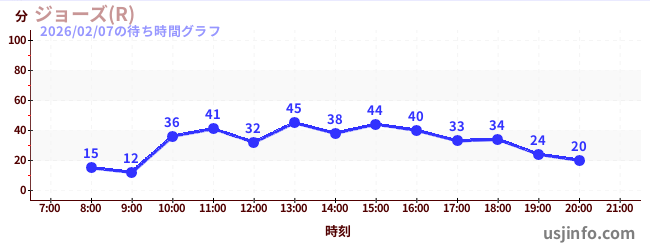 • ジョーズ(R)$B$N(B2026年02月07日の待ち時間